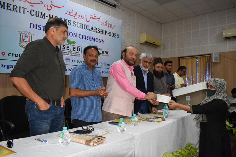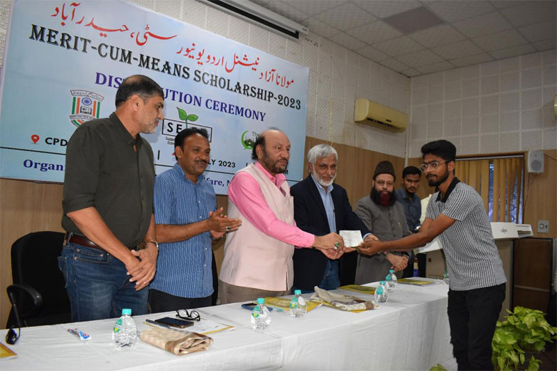 Hyderabad: The scholarship distribution ceremony for Merit-cum-means scholarship- 2023 for selected students of Maulana Azad National Urdu University (MANUU) was held today at the CPDUMT auditorium.