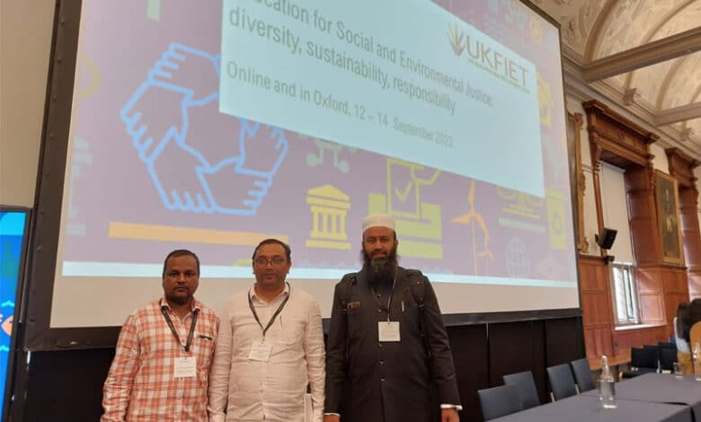 Hyderabad: Maulana Azad National Urdu University’s 3 Faculty Members presented papers during the prestigious United Kingdom Forum for International Education and Training (UKFIET) 2023 Conference hosted at the University of Oxford in the United Kingdom. The event being held from 12 to 14 September 2023, on the topic “Education for Social and Environmental Justice: diversity, sustainability, responsibility” brought together leading minds in the field of international and comparative education.