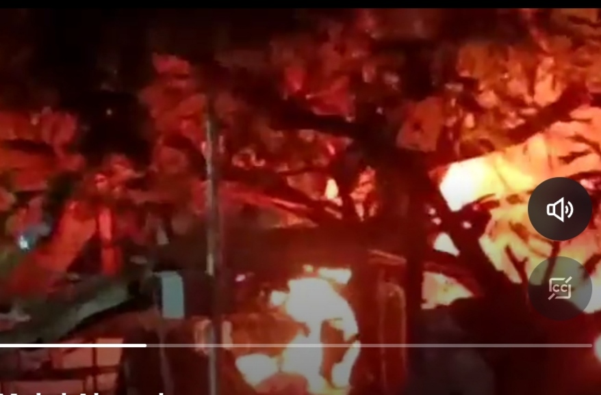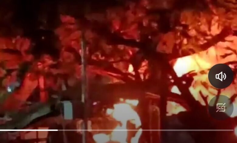 The security guard sleeping in the car was burnt alive in the accident. 5 cars were completely burnt. Police and fire brigade officials controlled the fire. More details are awaited.