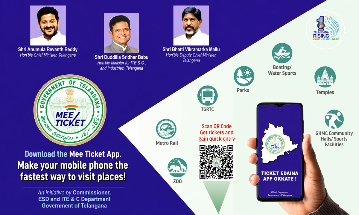Hyderabad: The Mee Ticket App, developed under MeeSeva, is enabling citizens to book metro, bus, temple, park, museum, and forest safari tickets in one place. The app allows users to skip queues and access multiple services from their phones.