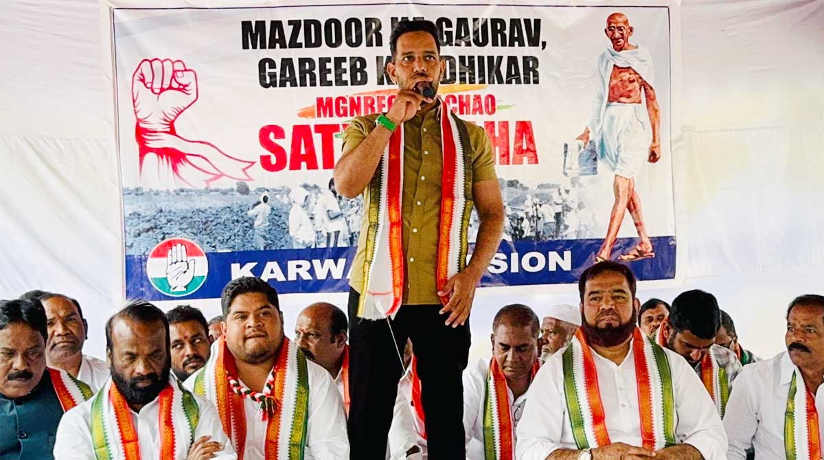 Hyderabad: Mr. Faheem Quraishi, Chairman of TMRIS, strongly criticised the BJP government for renaming the MNREGA scheme, stating that it is a clear and open reflection of the BJP’s hatred towards Mahatma Gandhi. He was addressing a satyagraha organised against the BJP government over MNREGA-related issues in the Karwan Division of the Karwan Assembly Constituency.