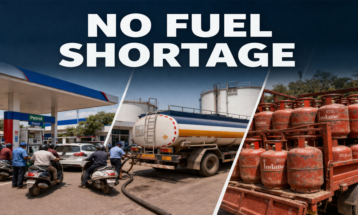 No fuel shortage in Hyderabad as petrol, diesel and LPG supply exceeds demand; government urges citizens to avoid panic buying.