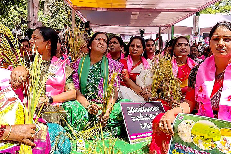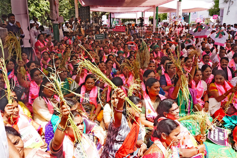 Besides the Ministers, TRS MPs, MLAs, MLCs, Chairpersons of various Corporations, state farmers committee members and the party leaders and cadres took part in the dharna.