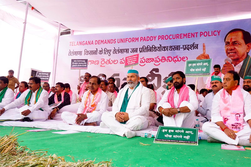 Rao thanked Bharatiya Kisan Union leader Rakesh Tikait for attending the dharna and supporting the state farmers’ cause.