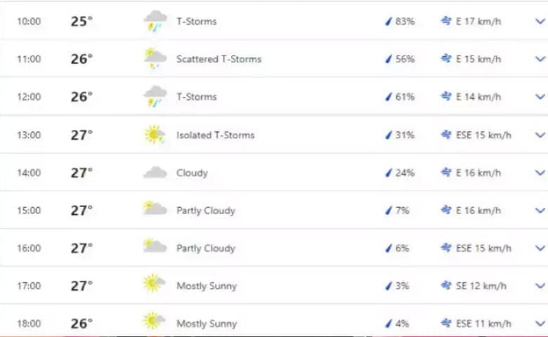 The weather forecast shows a grim start to Day 5, with an 83% chance of rain at 10:00 AM local time. While rain is expected to lessen as the day progresses, with less than a 10% chance from 3:00 PM local time, Bangladesh will be hoping for enough play to chase down the remaining 143 runs.
