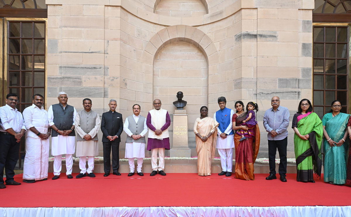 Prez Murmu unveils bust of C Rajagopalachari statue in Rashtrapati Bhavan