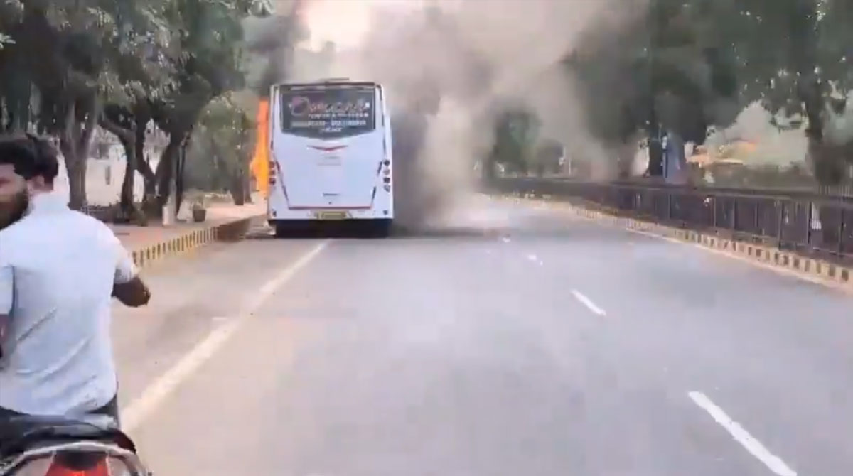 Hyderabad: Panic spread near Rishikonda on the Beach Road in Visakhapatnam, Andhra Pradesh, after private travels bus suddenly caught fire while in motion on Monday.