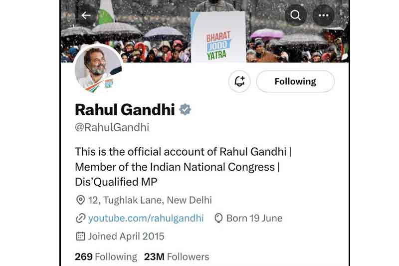 Rahul changes his Twitter bio, writes Dis’qualified MP