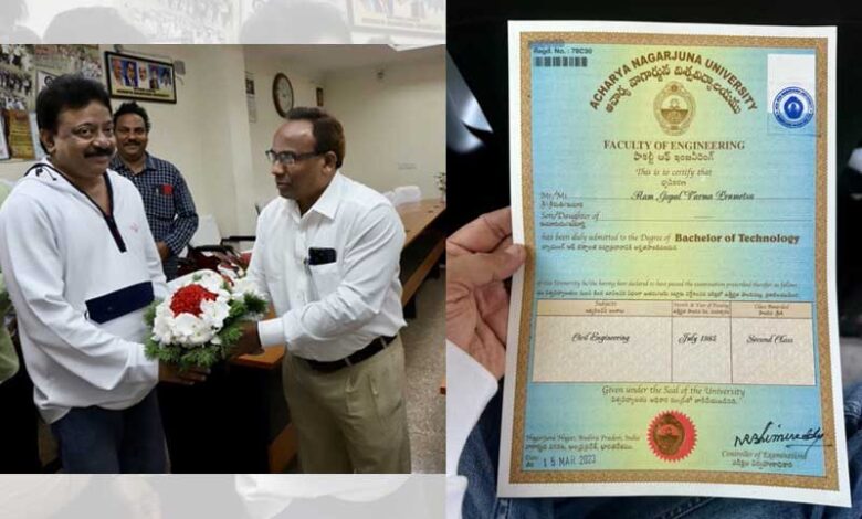 Vijayawada: Well-known filmmaker Ram Gopal Varma has received his engineering degree 37 years after he finished B Tech from Acharya Nagarjuna University in Guntur.