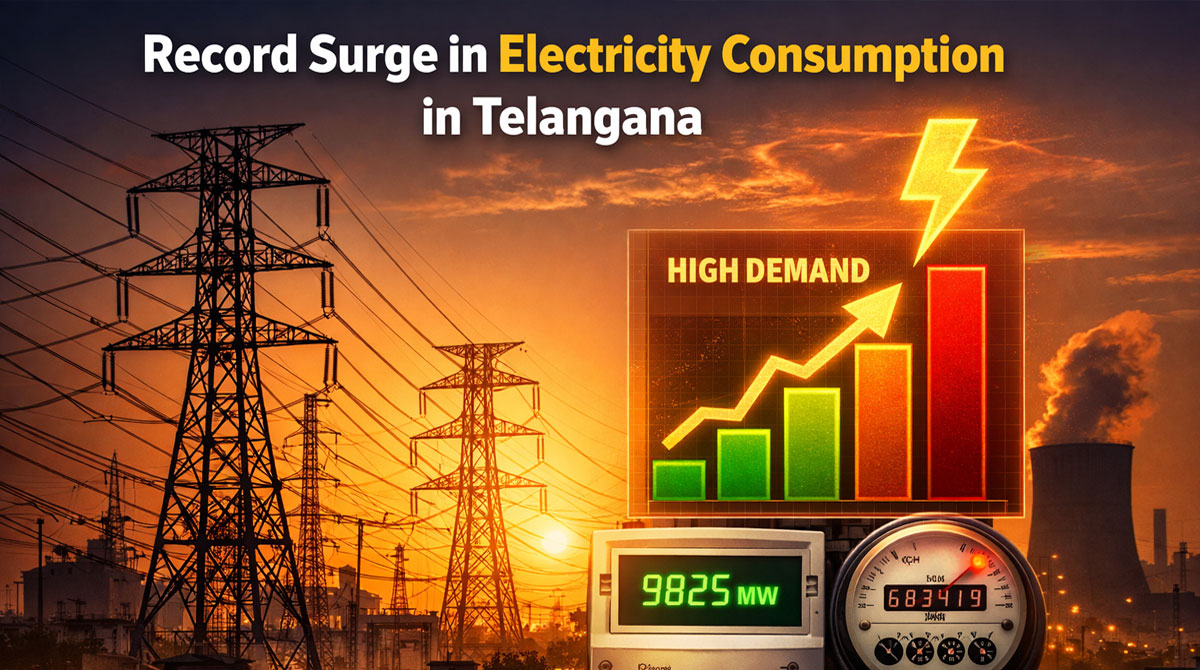 Hyderabad: Telangana has recorded a significant surge in electricity consumption due to rising temperatures and increased agricultural activity during the ongoing rabi crop season. The growing demand from agricultural, domestic, commercial, and industrial sectors has pushed the state’s power consumption to new highs.