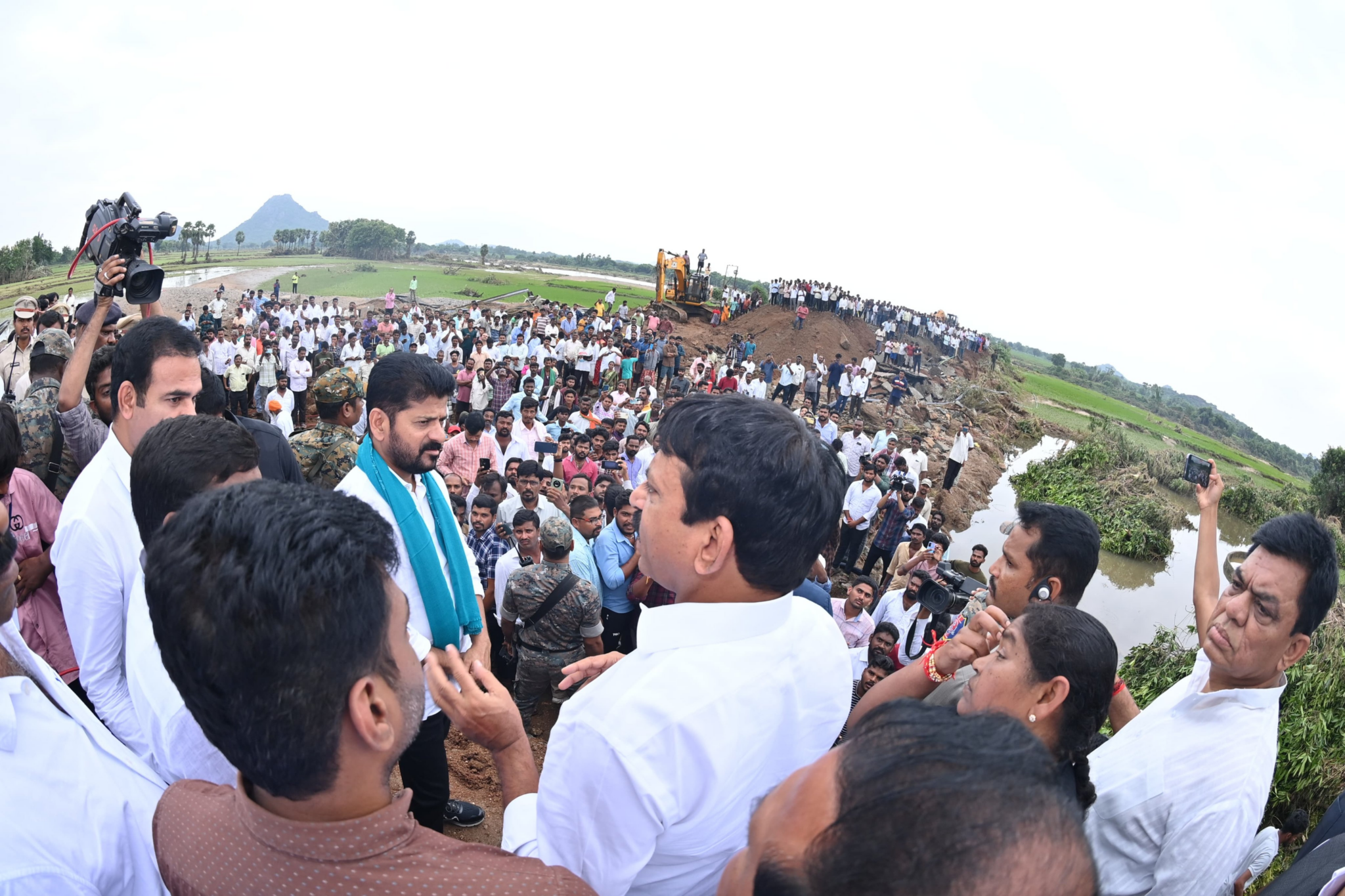 Addressing the plight of farmers who suffered crop losses due to the severe flooding, CM Revanth Reddy announced that an immediate compensation of Rs. 10,000 per acre would be provided. The Chief Minister personally visited the flood-affected areas, including the villages along the Akeru stream, and interacted with the affected families to offer his support.