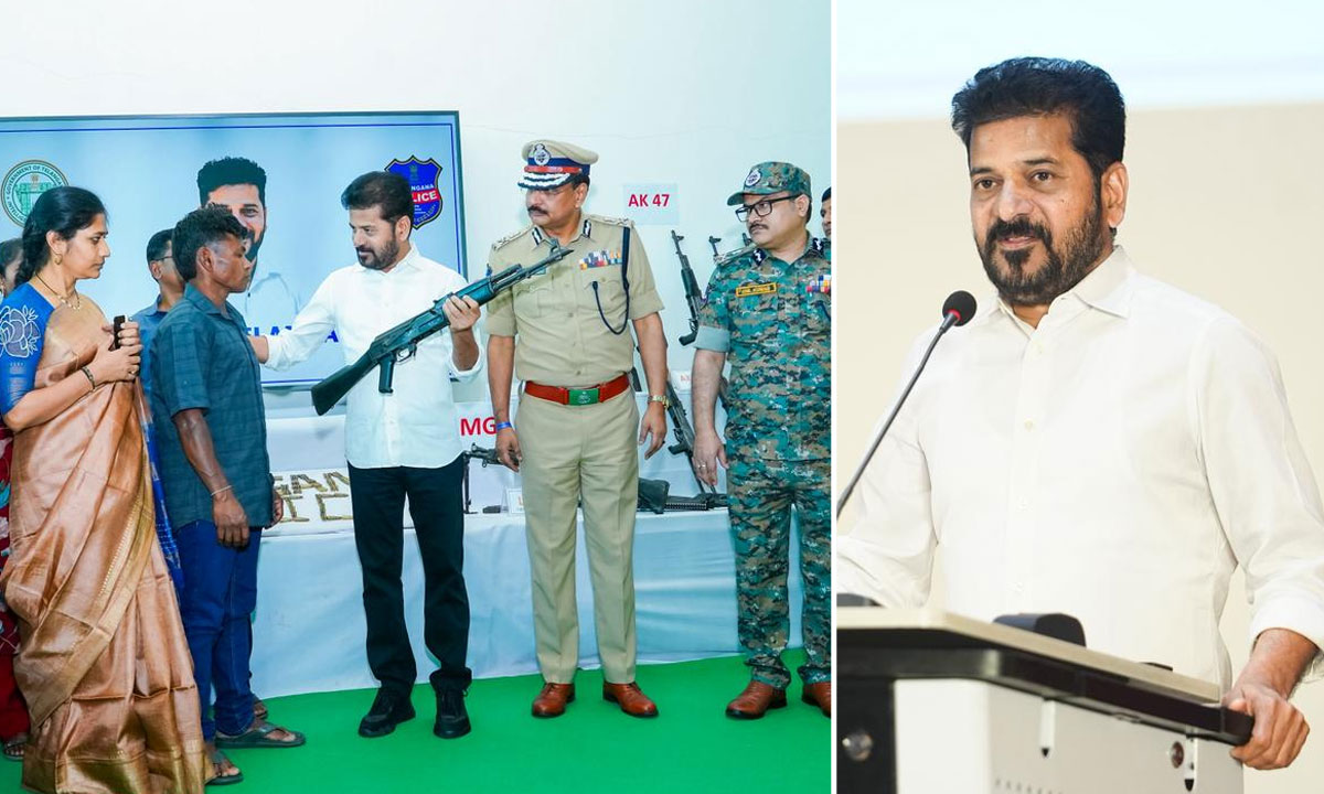 CM Revanth Reddy appeals to Maoist leaders including Ganapati to surrender as 130 Maoists lay down arms with 124 weapons at ICCC Hyderabad.