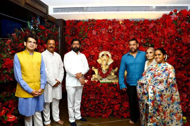 Mumbai: Salman Khan joined his step-mother Helen, brother Arbaaz Khan and Maharashtra Chief Minister Eknath Shinde to visit the Ganpati Visarjan celebrations at his sister Arpita Khan Sharma’s residence on Wednesday evening.