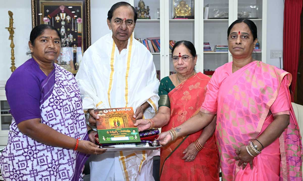 As part of the invitation, ministers presented traditional offerings, including sacred bangaram (jaggery) and clothes, to KCR and his wife, requesting them to attend the Medaram Maha Jatara.