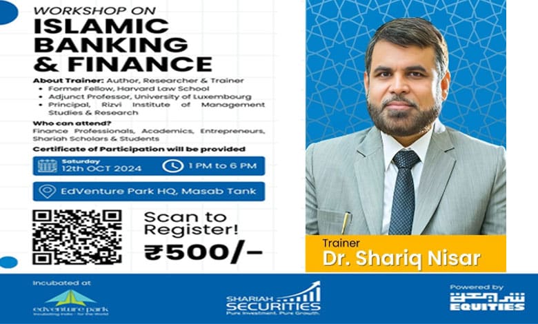 Hyderabad: Shariah Securities, in collaboration with EdVenture Park, is set to host a comprehensive workshop on Islamic Banking and Finance, featuring renowned expert Dr. Shariq Nisar.