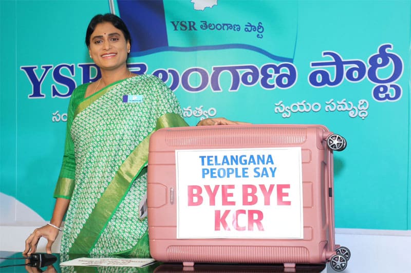Hyderabad: With majority of exit polls in Telangana giving an edge to the Congress party, YSR Telangana Party (YSRTP) leader Y. S Sharmila on Saturday gifted a suitcase to Chief Minister K. Chandrasekhar Rao to pack his bags from Pragati Bhavan, his official residence.
