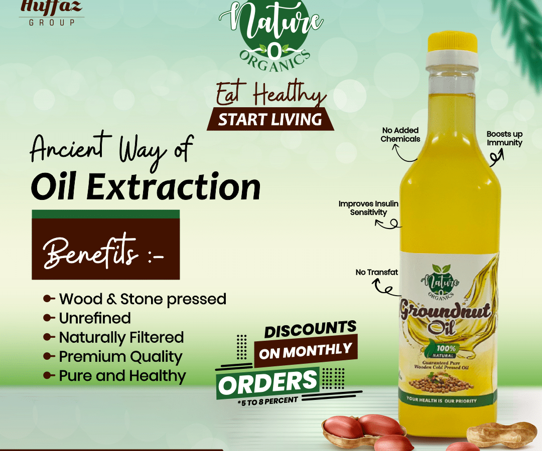 Nature O Organics by Huffaz group specializes in manufacturing wooden Cold pressed pure Groundnut Oil. They also deals in Safflower oil, Coconut oil and other Oils. We Offer Home delivery across hyderabad ensuring fresh and natural products right at your door step.