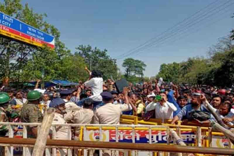 When the students tried to cross the police barricades, the police fired tear gas shells and lathicharged the students.