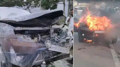 A Moving Car Suddenly Caught Fire Within the Mailardevpally Police Limits