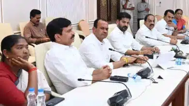 Briefing the media late at night, Ministers Ponguleti Srinivas Reddy, Adluri Laxmankumar, G. Vivek Venkataswamy, and Government Advisor Mohammed Shabbir…
