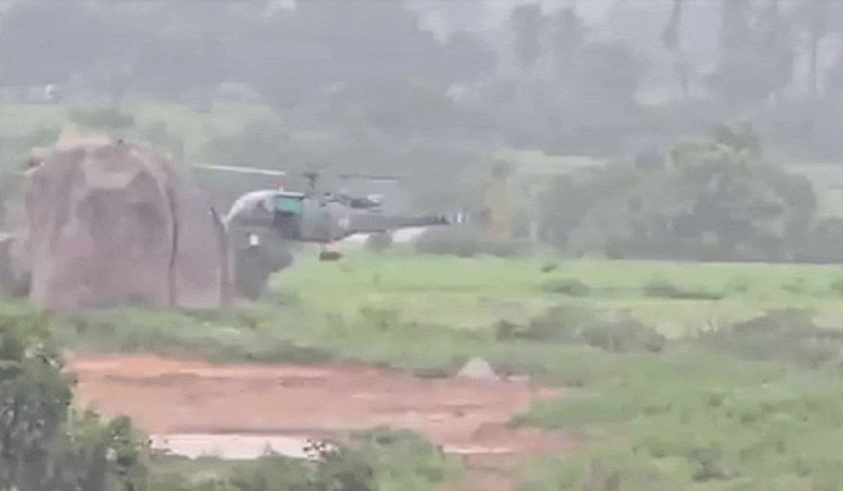 Two armed forces helicopters rescued five villagers trapped in floods in Telangana's Rajanna Sircilla district on Thursday.