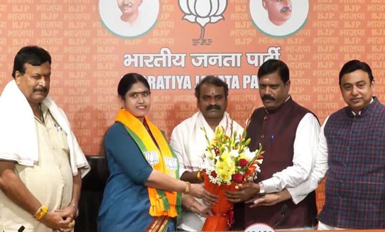 She joined the BJP at the party headquarters in New Delhi on Saturday, in the presence of Union Minister of State for Information and Broadcasting, L. Murugan, BJP national secretary Arvind Menon who is also the in-charge of the BJP for Tamil Nadu, co-in-charge of the party for state elections, Ponguleti Sudhakar Reddy.