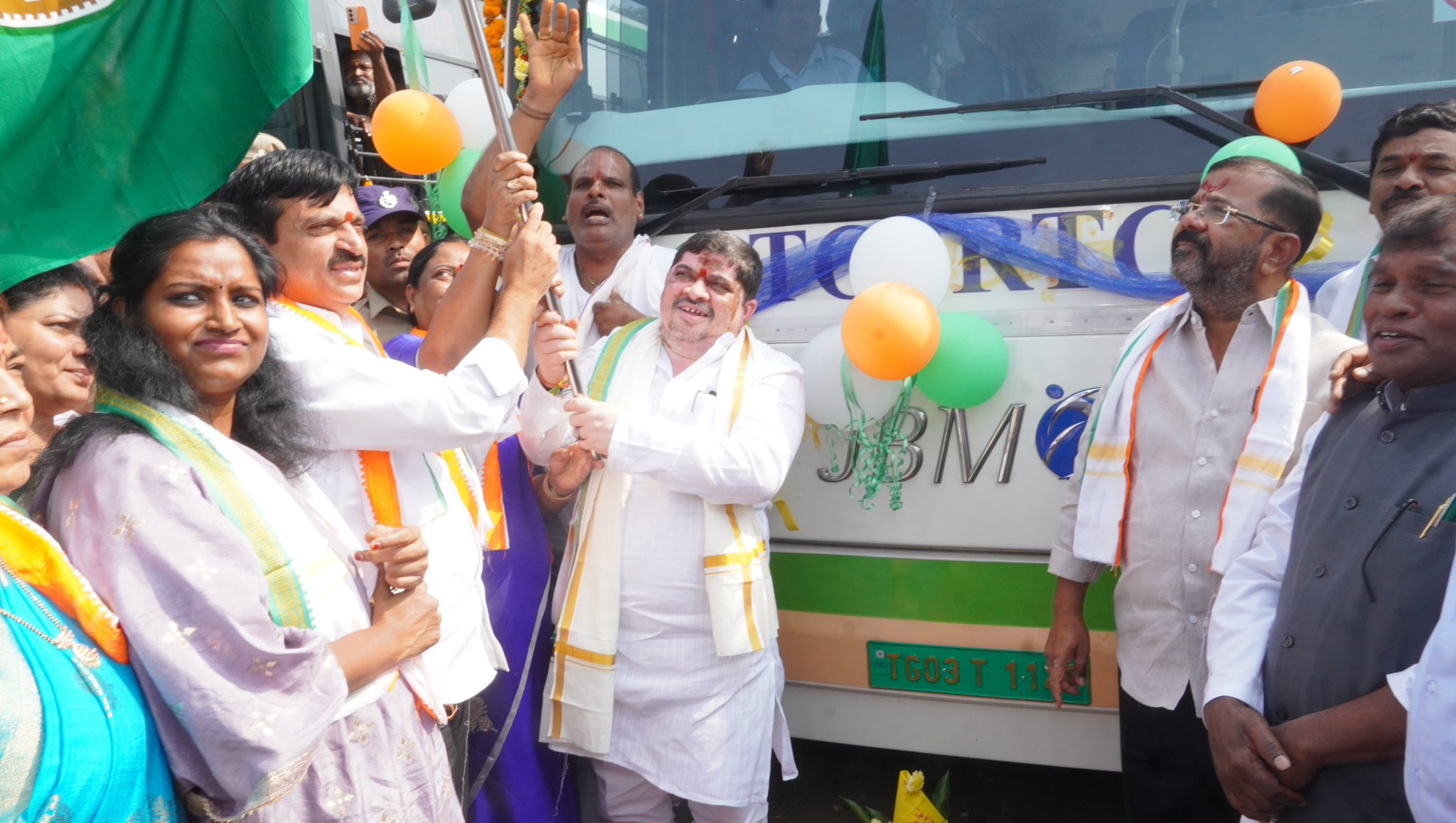 Warangal: The Telangana State Road Transport Corporation (TGSRTC) has officially launched 50 electric buses in Warangal on Monday. The buses were flagged off by Transport Minister Ponnam Prabhakar, alongside key political figures such as Ministers Ponguleti Srinivasa Reddy, Konda Surekha, MP Kadiyam Kavya, MLAs Nayini Rajender Reddy, Revuri Prakash Reddy, Nagaraju, Finance Commission Chairman Rajaiah, and Warangal Mayor Gundu Sudharani at Hayagriva Grounds in Hanumakonda.