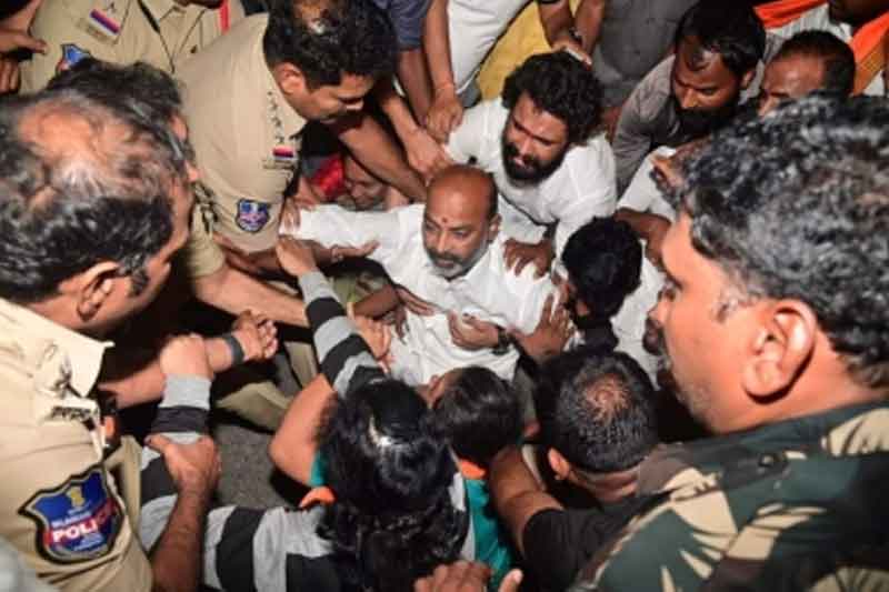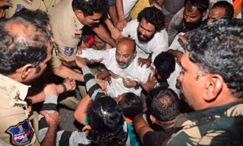 The Karimnagar MP was arrested amid high-drama from his in-laws’ house in Karimnagar on Tuesday night. This triggered protests by the BJP, which termed the arrest illegal.
