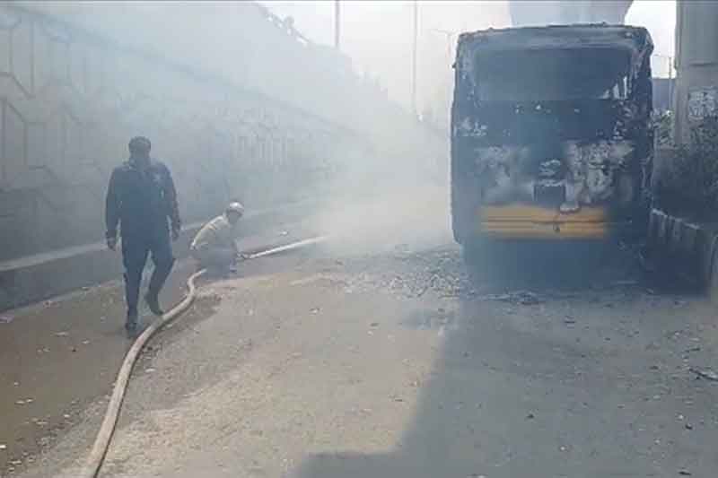 Alerted by the depot authorities, fire service personnel rushed to the spot and doused the fire. The bus was completely gutted in the state. However, the fire did not spread to the fuel station, which could have led to a major disaster.