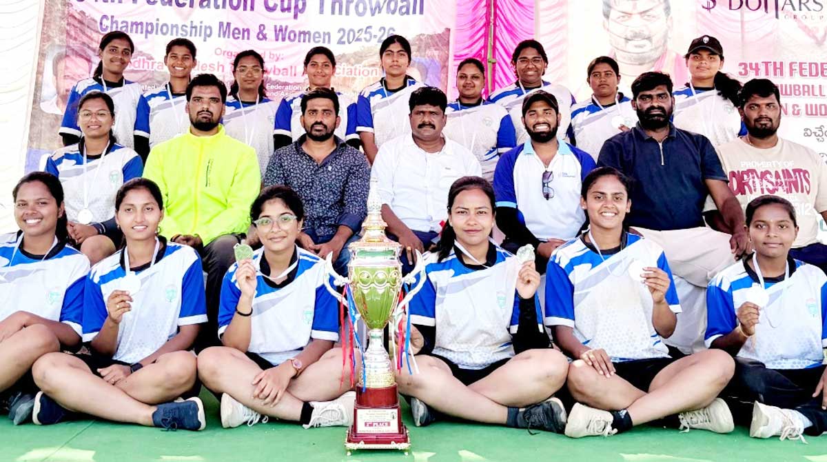 The Telangana Women’s Throwball Team delivered an impressive performance by securing the Silver Medal at the 34th Federation Cup Throwball Championship 2026, held on March 14 and 15 at Sri Vatsala Gurukul Vidyalaya in Tirupati.
