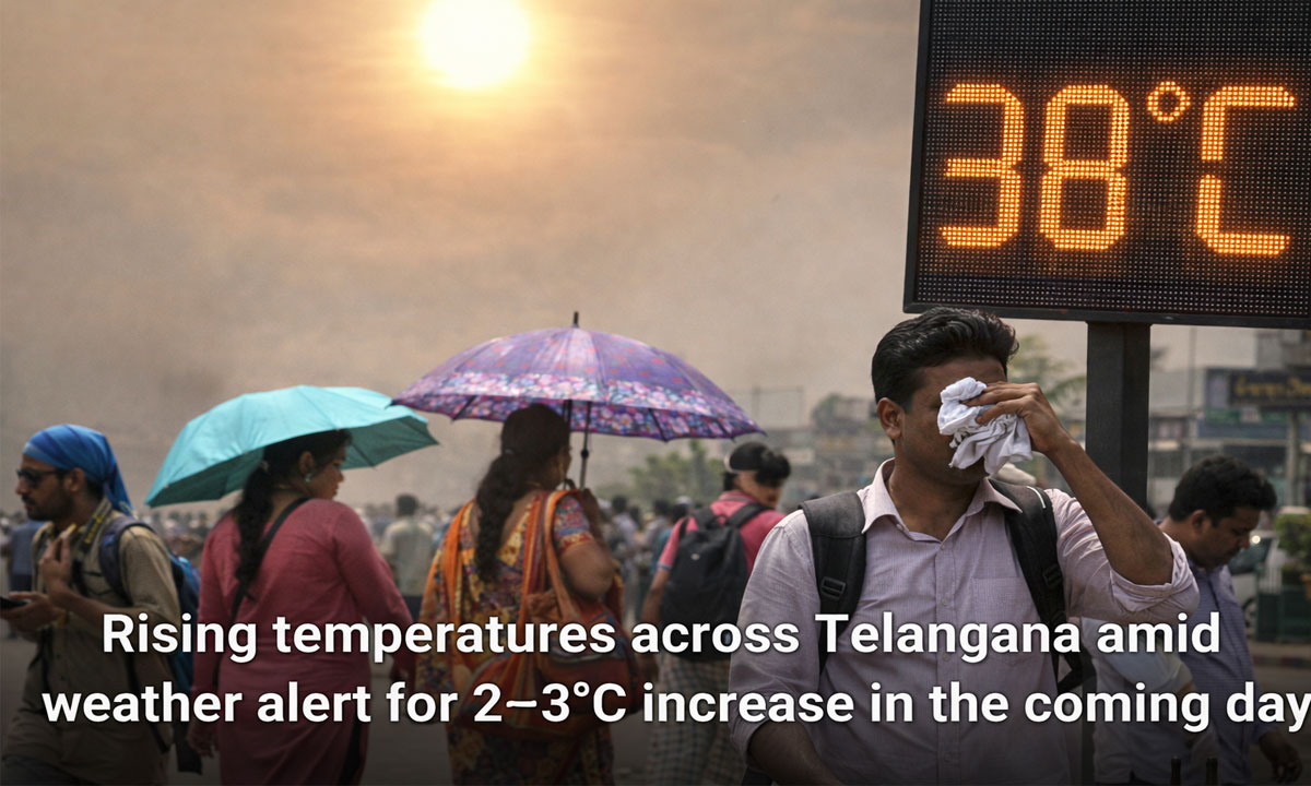 Telangana weather department warns temperatures may rise by 2–3°C over the next three days. Bhadrachalam and Mahabubnagar record 38°C as heat increases.