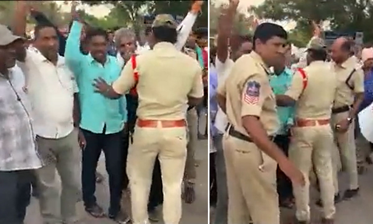 The incident took place in Narsampet in Warangal district, where TGSRTC employees have been protesting for the past two days.