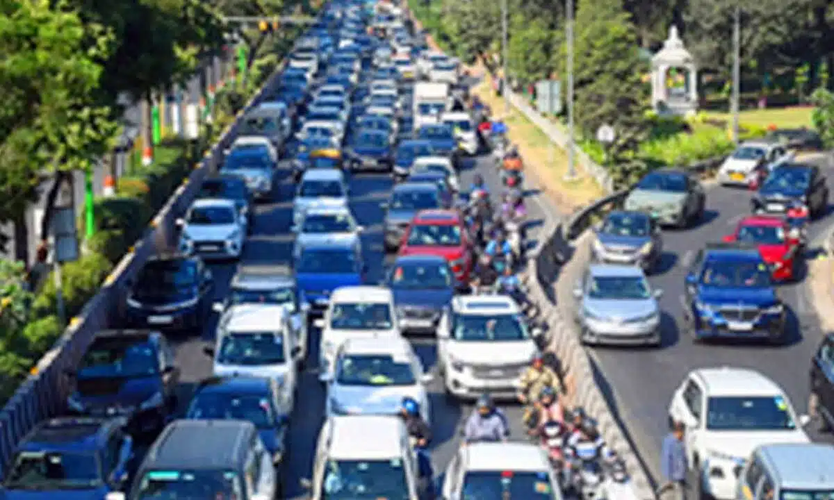 Hyderabad: A massive traffic jam brought vehicular movement to a halt at Nalgonda Crossroads, Malakpet, on Sunday morning at 11 AM.