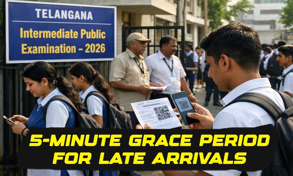 In a major relief for students, the Telangana Board of Intermediate Education (TG BIE) has announced a 5-minute grace period for candidates appearing in the TS Intermediate Public Examinations (IPE) 2026. As per the latest decision, students arriving late will still be allowed to write the exam if they enter the centre within the permitted grace time.