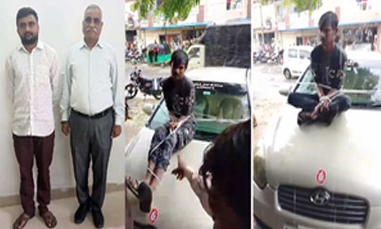 The incident has led to the registration of cases against both the accused who carried out the assault and the youth who was tied to the car.
